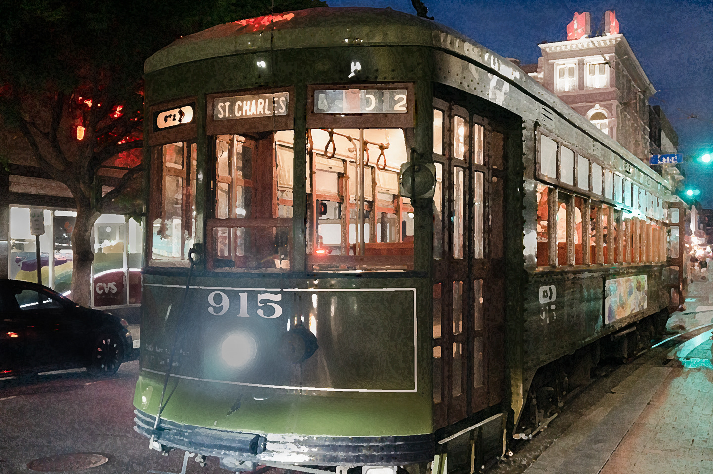 It was twilight and the lighting captured the St. Charles Streetcar just right as it waited in downtown New Orleans before heading out to the Garden District.